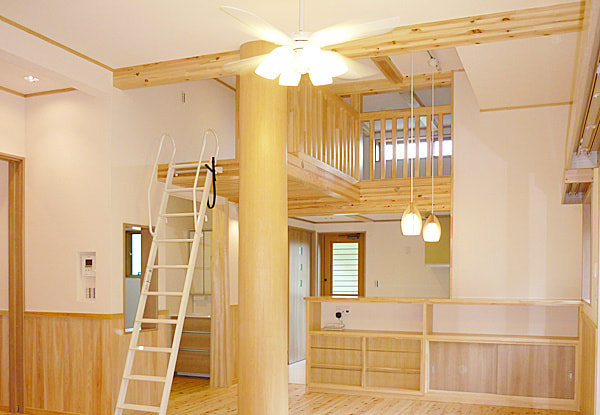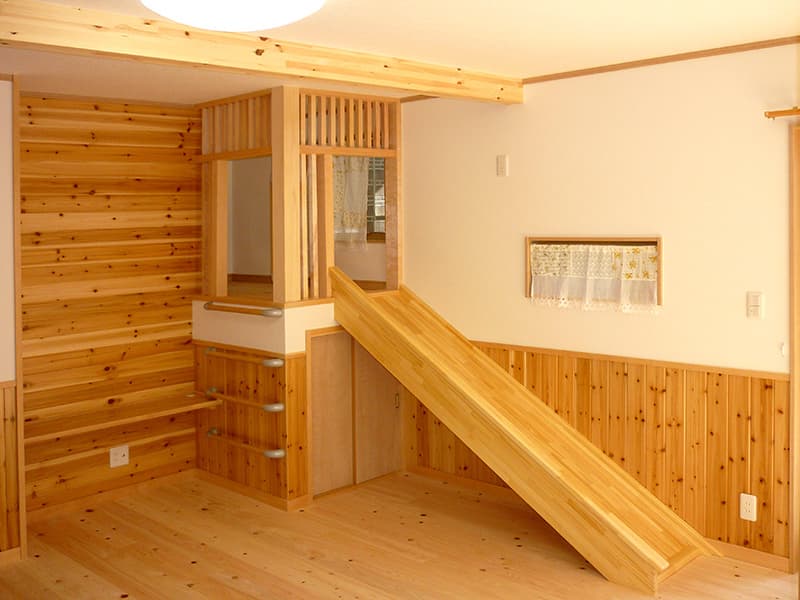 滑り台の付いた中二階があって、はしごの付いたロフトがあって…。お子様との「今日は何して遊ぼうか?」そんな会話が絶えない家になりそうです。収納スペースもたくさんある、ママにも嬉しい住まいです。
