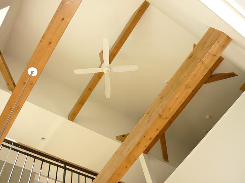 木材が持つ魅力を余すところなく取り入れた住まい。シーリングファンや間接照明など、随所にちりばめられた上質な空間演出がこだわりポイントです。木の薫で誰もが癒されるような家になりました。